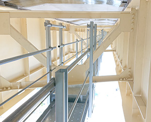 ZAM®鋼板を採用した高耐食鋼検査路「JB-HABIS」は、従来の溶融亜鉛めっき検査路に比べて2倍以上の耐食性を実現。